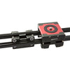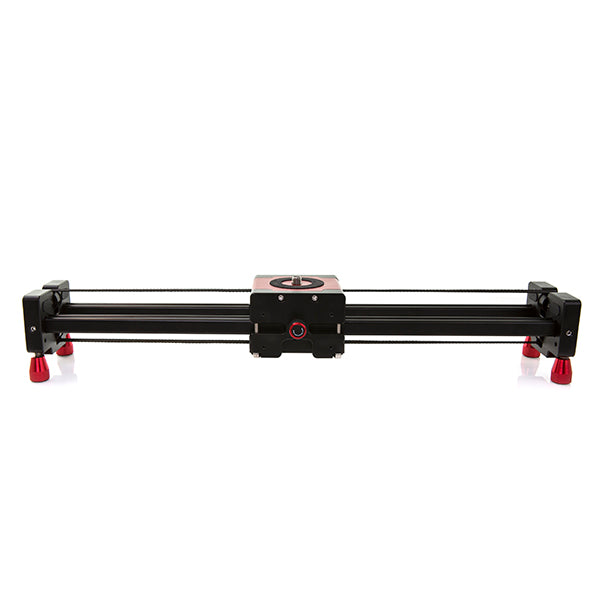 The Kenro Double Distance Camera Slider has a heavy duty anodised aluminium construction with an exceptionally smooth counter balanced belt driven mechanism. When used on a flat surface it offers 38cm of tracking movement; when mounted on a tripod, this doubles to 76cm for greater range of movement. The slider has 4 levelling up knobs for uneven surfaces.