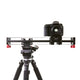 With clever design and top-quality gearing, the innovative Kenro Double Distance Camera Slider extends seamlessly in either direction, and the beautifully smooth belt-driven movement gives clean footage with no judders or bumps – the perfect combination of portability and performance. The slider’s aluminium construction means that it is strong and lightweight – weighing just 1.64kg, with a maximum load of 6kg when set up on the ground, or 3kg on a tripod.