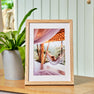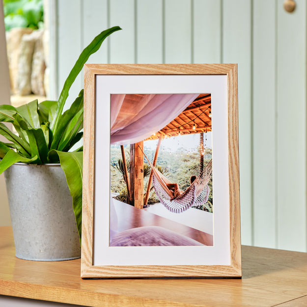 Most sizes include a polished glass front, wall hanging hooks, and an easel back so you can display them on a shelf, desk or mantelpiece. The larger A4 and A3 sizes are designed for wall display only, with lightweight acrylic fronts and hanging hooks. Each frame comes individually shrink wrapped for protection.