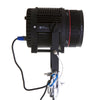 The Fresnel lens on this very large unit focuses from narrow to wide beam, 12-35 degrees, and uses a single 200 Watt LED bulb to produce a brightness of up to 11923 LM. The brightness can be steplessly adjusted 0-100% using the manual dial or a DMX lighting control desk, and the unit has a built-in 2.4G radio receiver.*