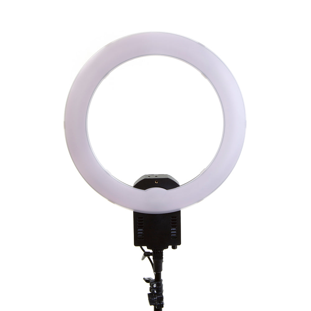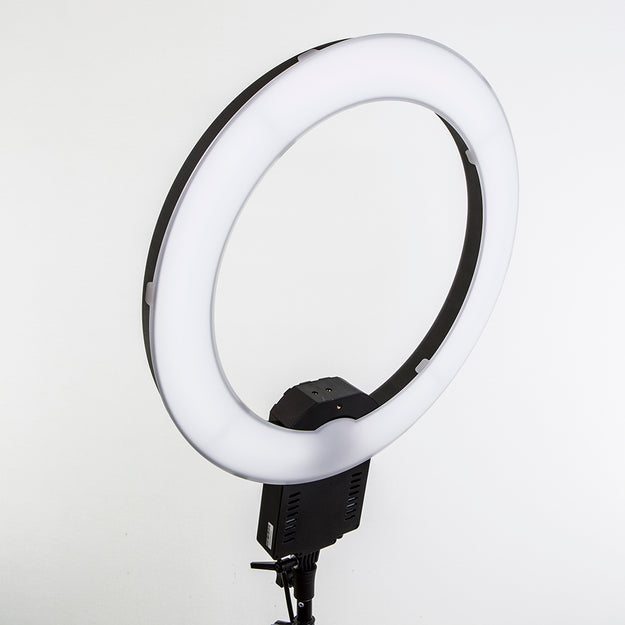 This entry-level ring light uses a single fluorescent tube to produce 3365 LM illumination. With a fixed colour temperature of 5400K, this affordable light offers a great introduction to the effects and possibilities opened up by use of ring lights in portrait photography, product photography and more. Supplied with an additional orange filter.