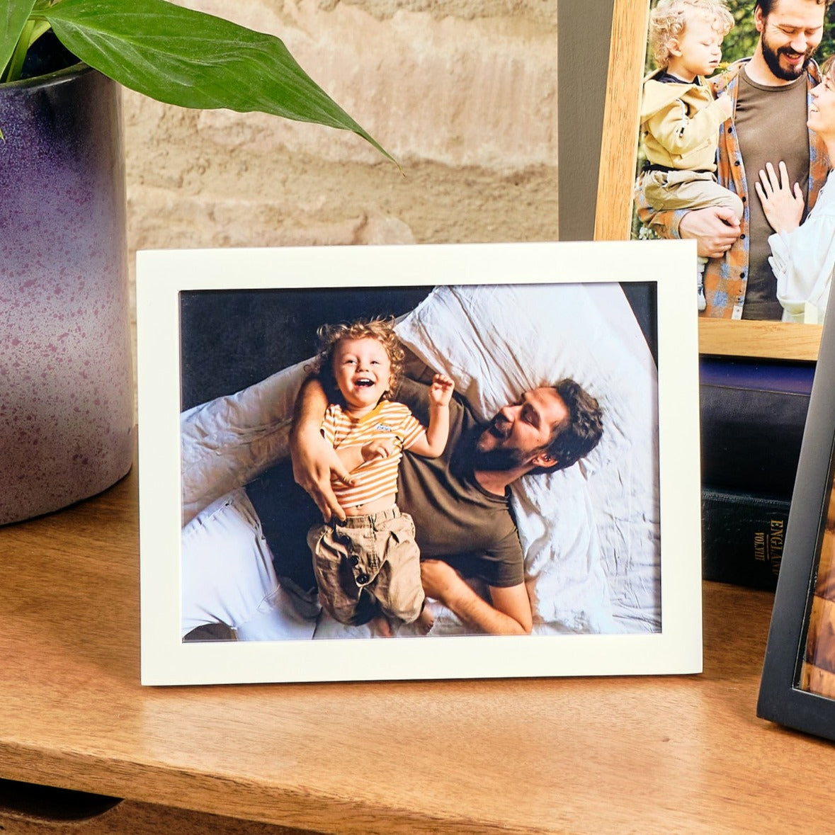 These superior quality, handcrafted photo frames in solid wood have a classic yet minimalist design that will subtly compliment home décor. Rio Slimline Frames have an understated 15mm wide profile and are handcrafted in solid rubberwood in Black, White, Natural and Dark Oak finishes. Each frame is supplied with fixings for wall hanging in portrait or landscape format, and is supplied individually shrink wrapped in a protective cardboard box.