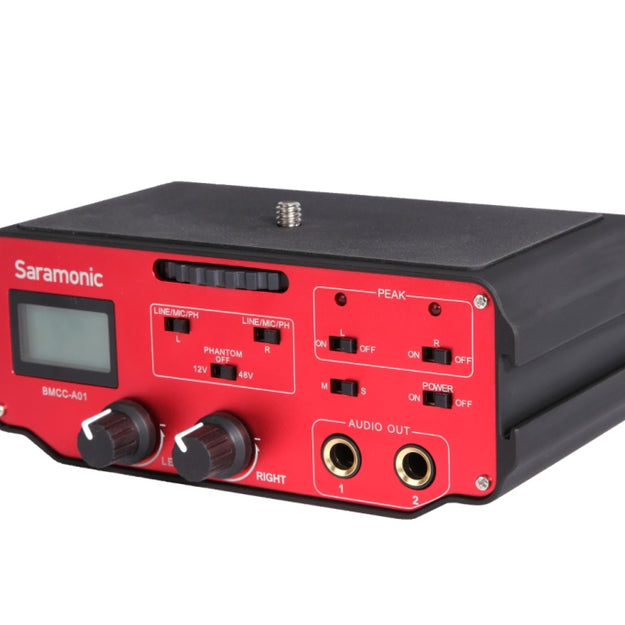 The Saramonic BMCCA01 is a two-channel XLR audio adapter, specially designed for the Blackmagic Cinema Camera. A wide variety of professional audio devices such as XLR microphones, wireless mics, boom mics and mixing boards may be connected to the camera via this adapter.